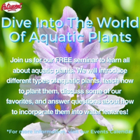 Dive Into The World Of Aquatic Plants https://patuxentnursery.com/event/dive-into-the-world-of-aquatic-plants-2/ Fri, 13 Jun 2025 15:30:00 +0000 https://patuxentnursery.com/?post_type=tribe_events&p=993476 Learn from our expert how to successfully cultivate beautiful water gardens!